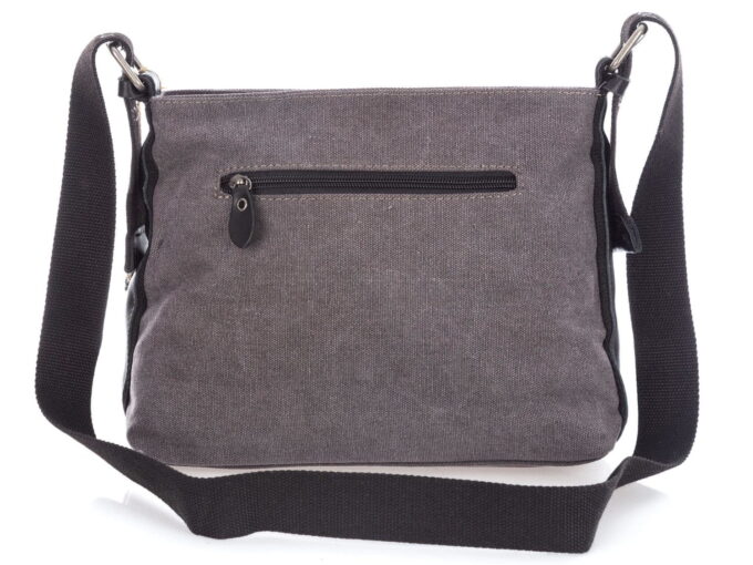 - Mała szara torebka damska wykonana z canvasu (płótna) połączonego ze wstawkami ze skóry naturalnej.