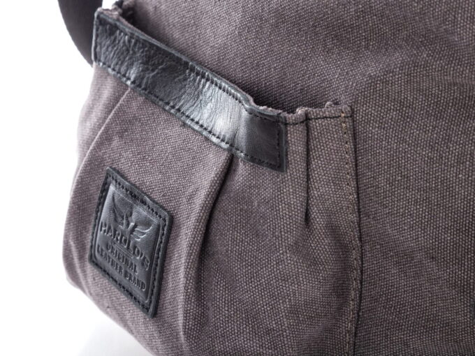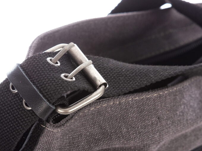 Torby płócienne często kojarzą się ze słabą jakością. W przeciwieństwie do znanych z supermarketów torebek wielokrotnego użytku wykonanych z tego materiału, do stworzenia naszego produktu użyto grube płótno o mocnym splocie, które jest dużo bardziej odporne na przecieranie. Canvas z którego uszyto prezentowany model wygląda stylowo i naturalnie. W roli elementów ozdobnych występuje drugi niezwykle ceniony materiał – skóra naturalna. Stworzono z niej wszystkie mechaniczne elementy takie jak uchwyty zamków błyskawicznych, łączenia przy pasku na ramię, oraz szczególnie narażone boki torebki.