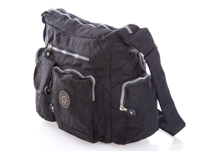 - Dwie kieszonki zapinane na zamki błyskawiczne po bokach torby,