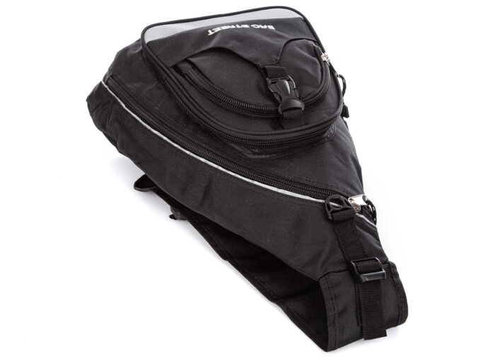 - Trójkątny plecak na jedno ramię, czarny, niemieckiej marki Bag Street.