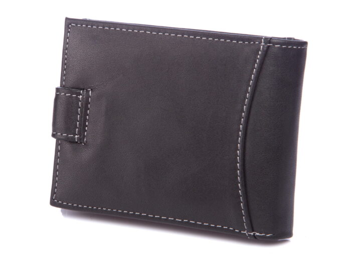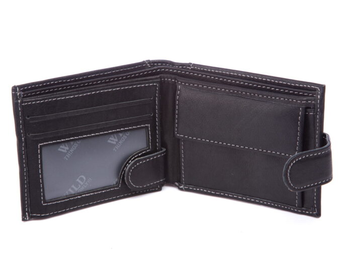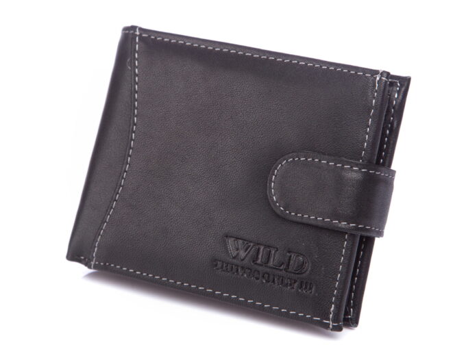 WILD Skórzany portfel męski poziomy nieduży czarny z zapięciem