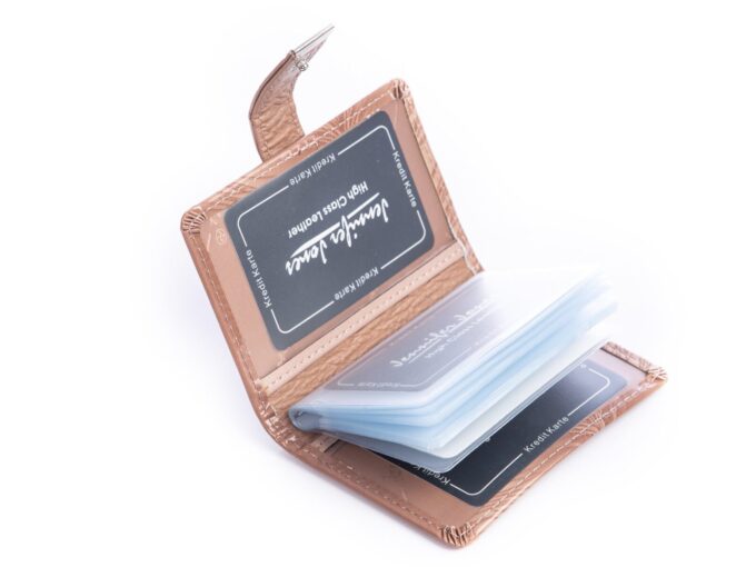 - 16 kieszonek przezroczystych o wymiarach 9,2 x 5,7 cm, mieszczących standardowe karty lojalnościowe, płatnicze, dowód osobisty, prawo jazdy, oraz wizytówki.