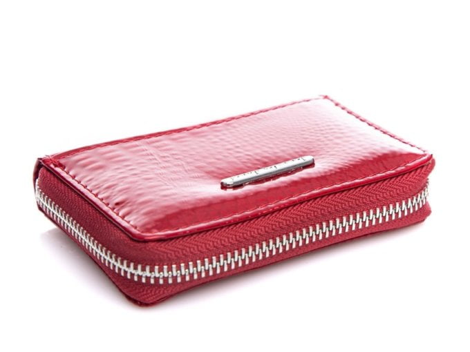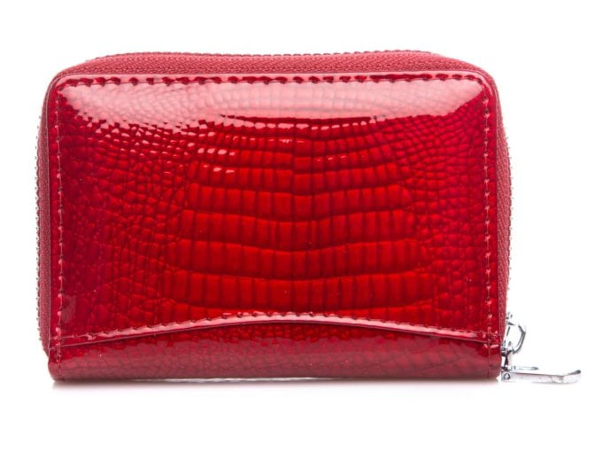 • Wizytownik damski skórzany, lakierowany, zapinany na zamek czerwony