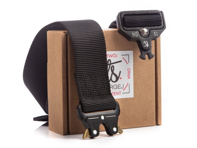 Czarny pasek taktyczny z łatwą w zapinaniu i odpinaniu metalową klamrą typu Quick Release. Klamra zapinana jest na zatrzask i można ją odpiąć za pomocą jednej ręki. Pasek wykonany jest z bardzo mocnej taśmy polipropylenowej. Sprzedawany w komplecie z eleganckim, firmowym pudełkiem stanowi oryginalny i sprawdzony pomysł na prezent dla mężczyzny. Sprawdzi się jako upominek na urodziny, imieniny, boże narodzenie i inne okazje. Ze względu na swoją praktyczność, wytrzymałość i łatwe korzystanie ucieszy z pewnością nie tylko entuzjastę gadżetów wojskowych. Pasek jest odpowiedni praktycznie do wszystkich rodzajów spodni, od jeansów po spodnie robocze i od munduru.