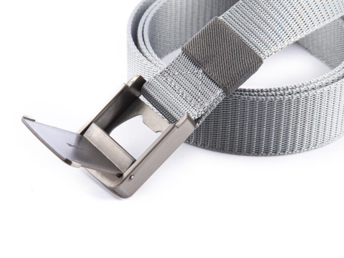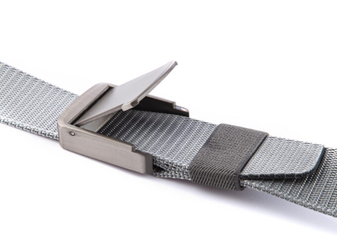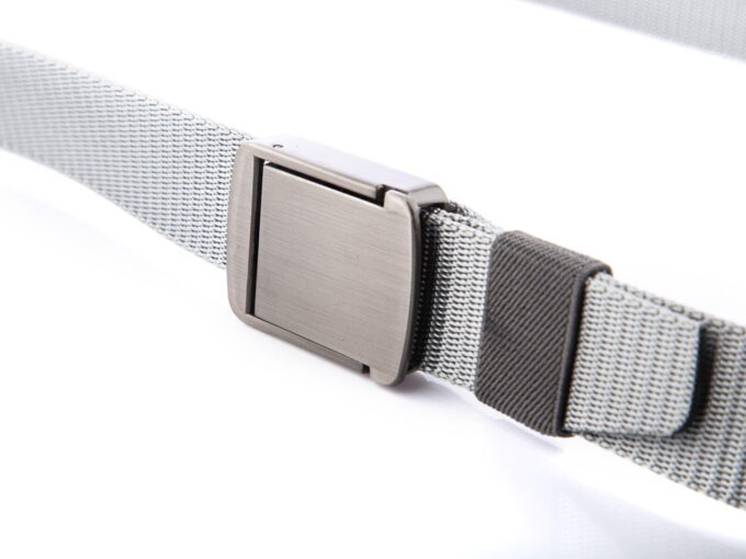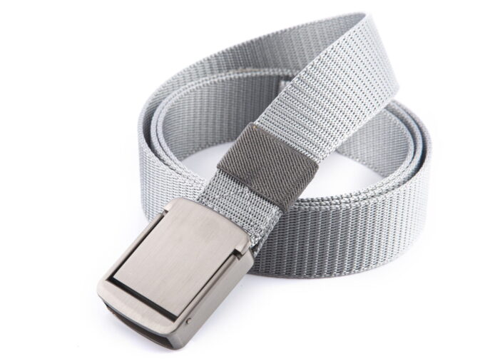 - Szary, bardzo mocny, nylonowy pasek męski do spodni z kolekcji PHANTOM z solidną, metalową klamrą zaciskową.