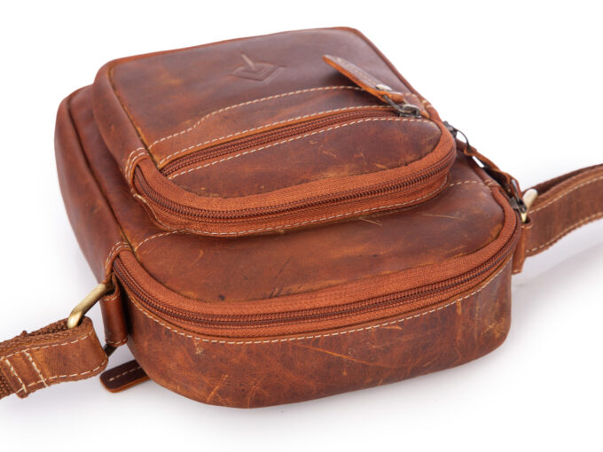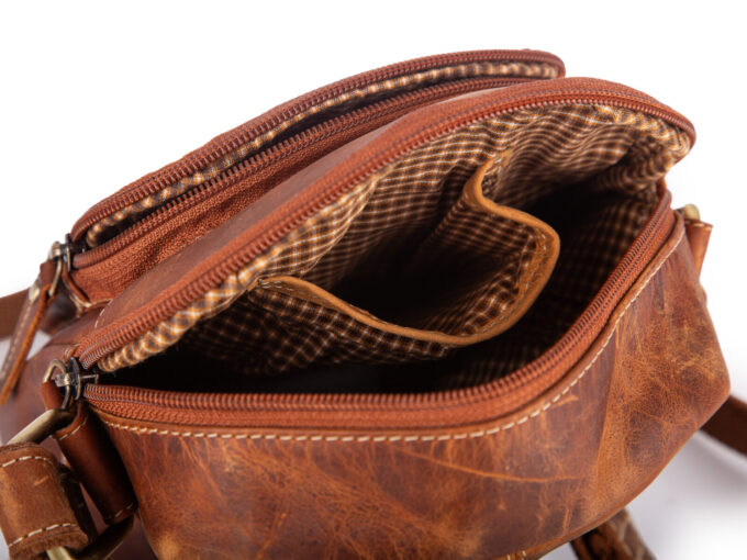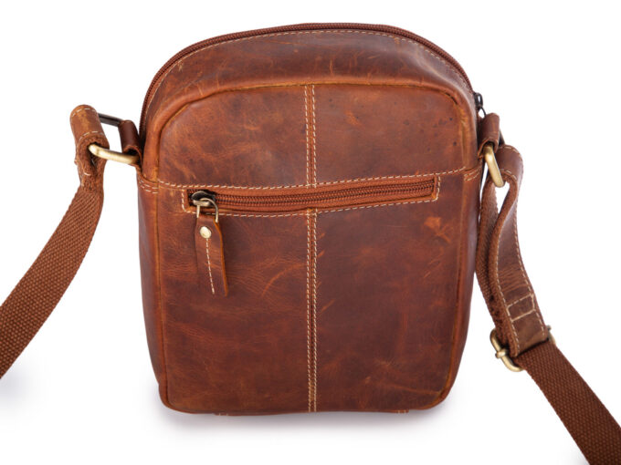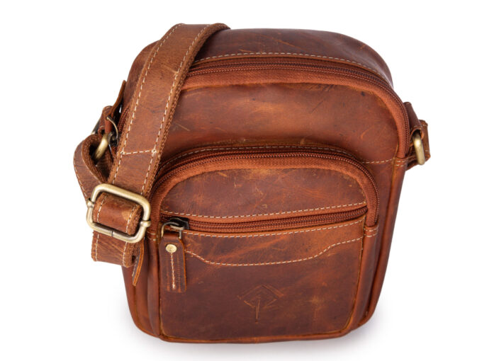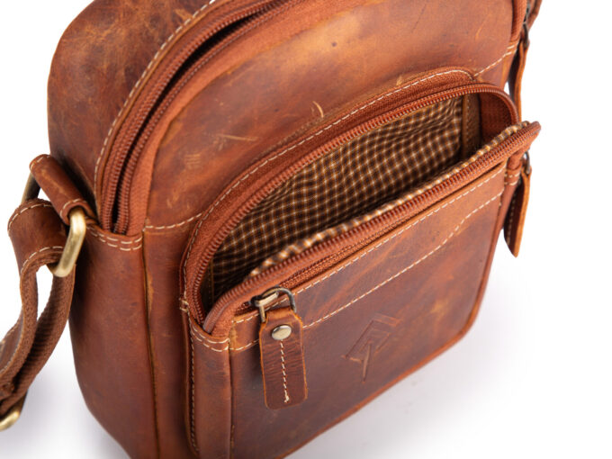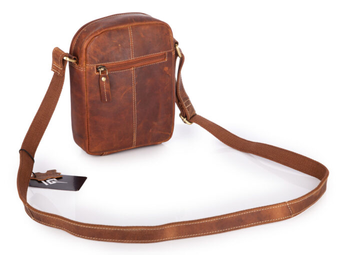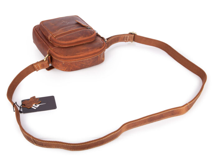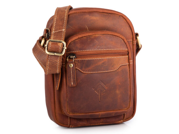 - Skórzana torbka męska na ramię w kolorze brązowym w stylu vintage.