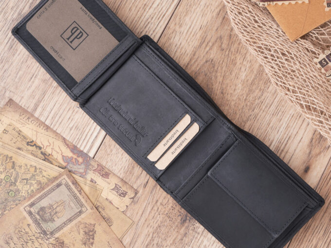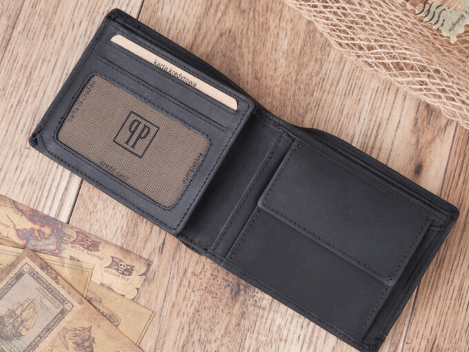 - Wygodny i solidny czarny portfel męski polskiej marki Paolo Peruzzi.