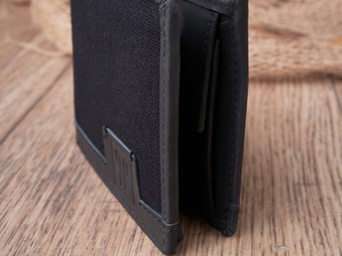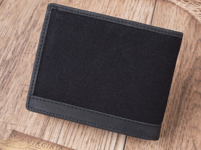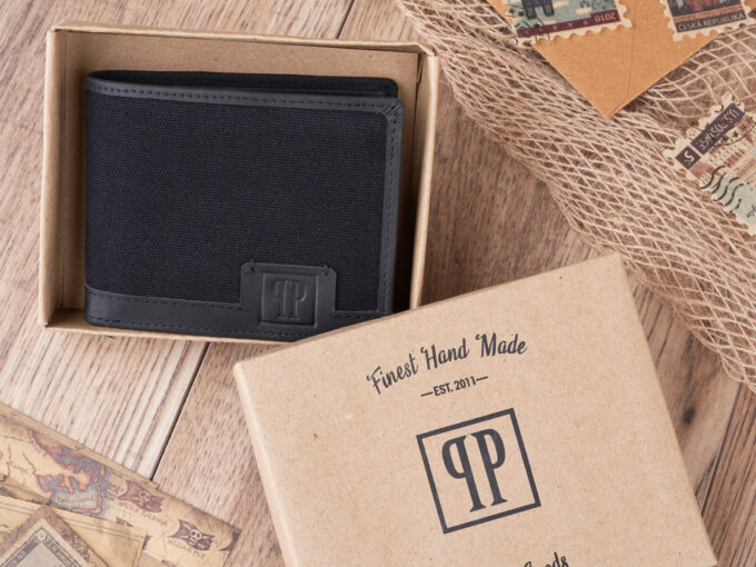 Wygodny, czarny portfel męski Paolo Peruzzi z mocnego materiału i skóry naturalnej