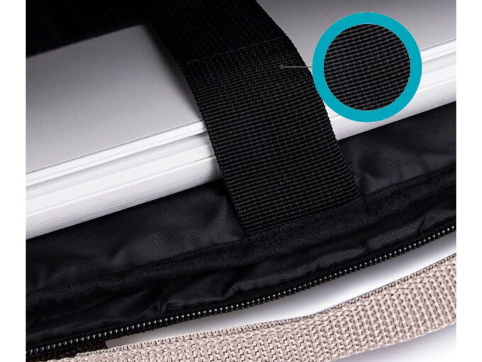 - Wewnątrz znajduje się dedykowana przegroda na laptopa o przekątnej ekranu do 15,6″ cala. Maksymalne wymiary komputera to 38,5 x 29,5 cm. Przegroda wyposażona jest w usztywniający pasek z rzepem.