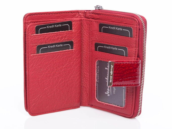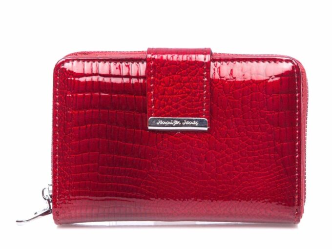 - Średni lakierowany portfel damski, czerwony niemieckiej marki Jennifer Jones.