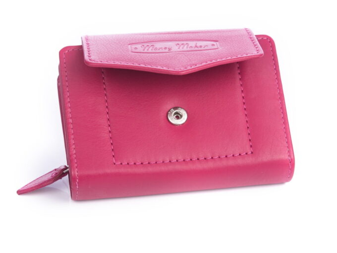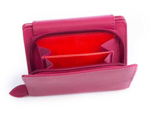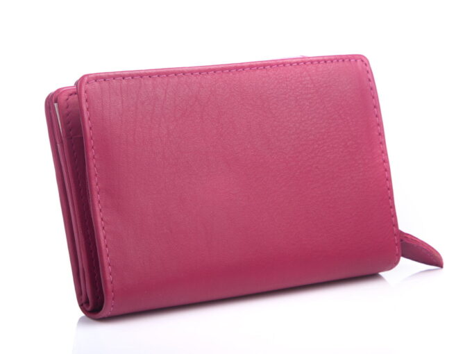 - Różowy portfel damski wykonany z miękkiej skóry naturalnej.