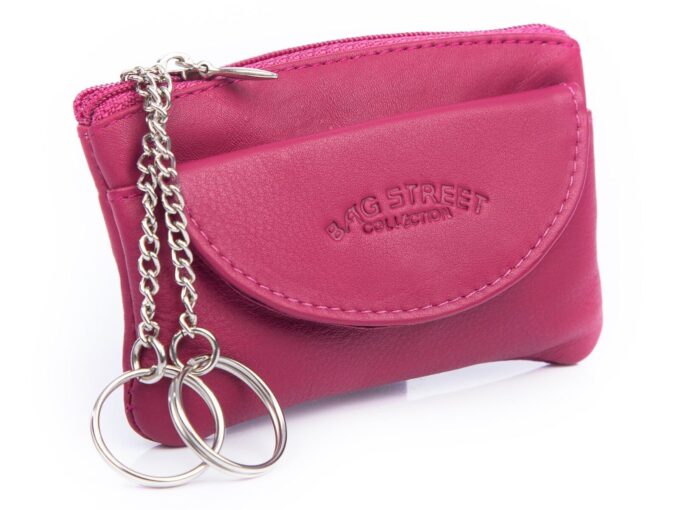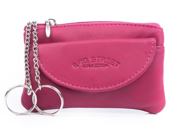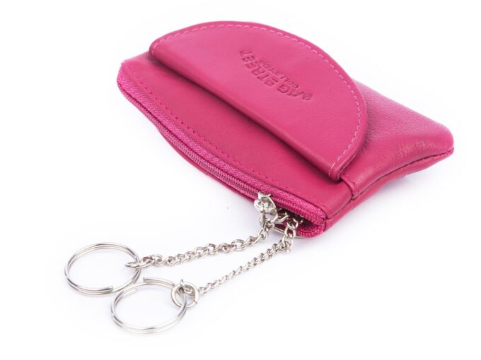 - Skórzany pokrowiec na klucze w kolorze różowym.