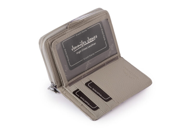 - Posiada aż dwie, pojemne przegrody na bilon, zamykane na metalowy zamek błyskawiczny z wygodnym dostępem z zewnątrz, bez potrzeby odpinania części na karty i banknoty.