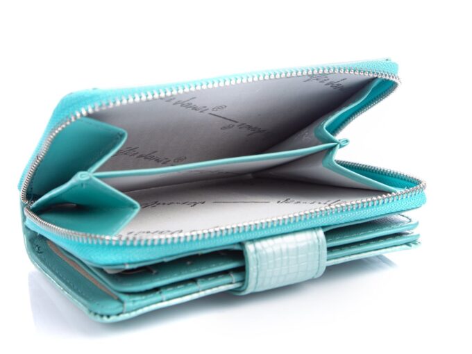 - Portfel wyposażono w dwie przegrody na bilon, zamykane na zamek błyskawiczny,