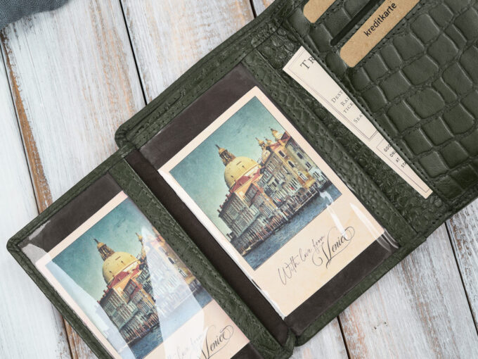 - Uszyty starannie z wysokiej jakości skóry naturalnej z eleganckim tłoczeniem croco. Portfel posiada piękne tłoczenie także w środku.