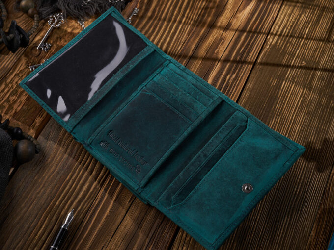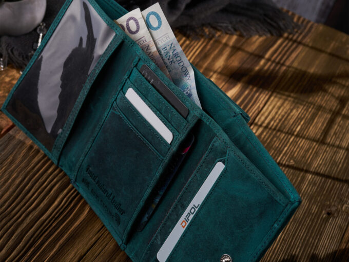 - Portfel wyposażono w ochronę kart zbliżeniowych – RFID.
