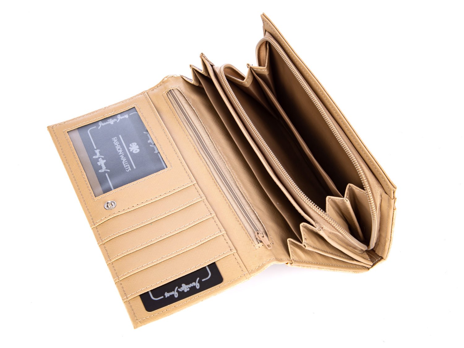 Poziomy duży portfel damski Jennifer Jones jasny beżowy