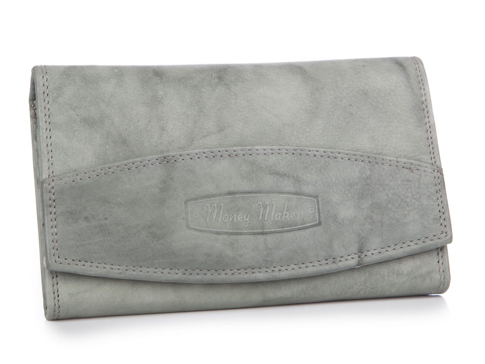 Klasyczny skórzany portfel damski szary z kiszenią na bigiel Money Maker