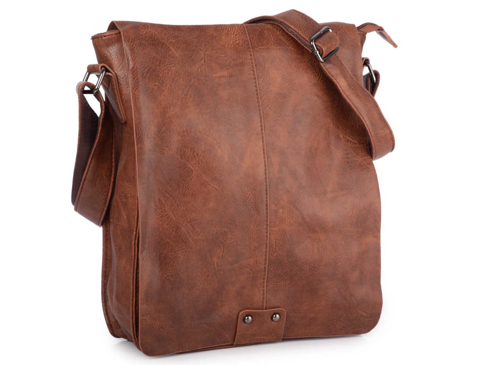 Pionowa, brązowa torba męska na ramię A4 z klapą