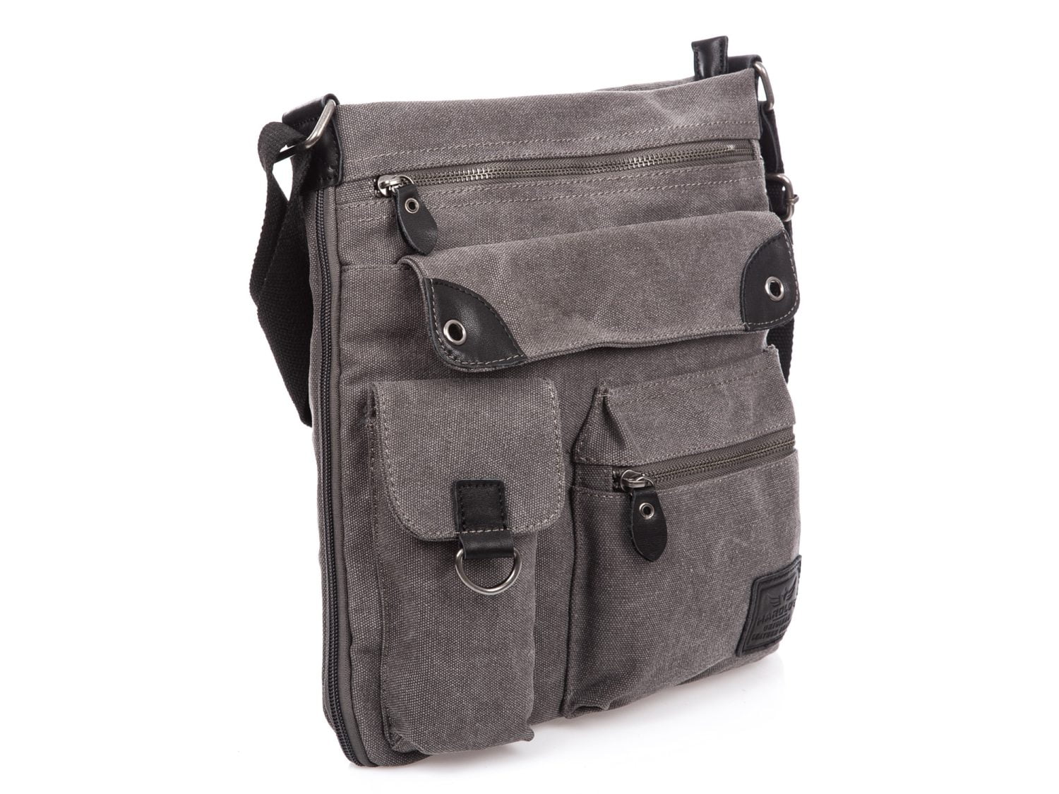 Poszerzana torba damska na ramię płócienna ze skórą, szara, J Jones