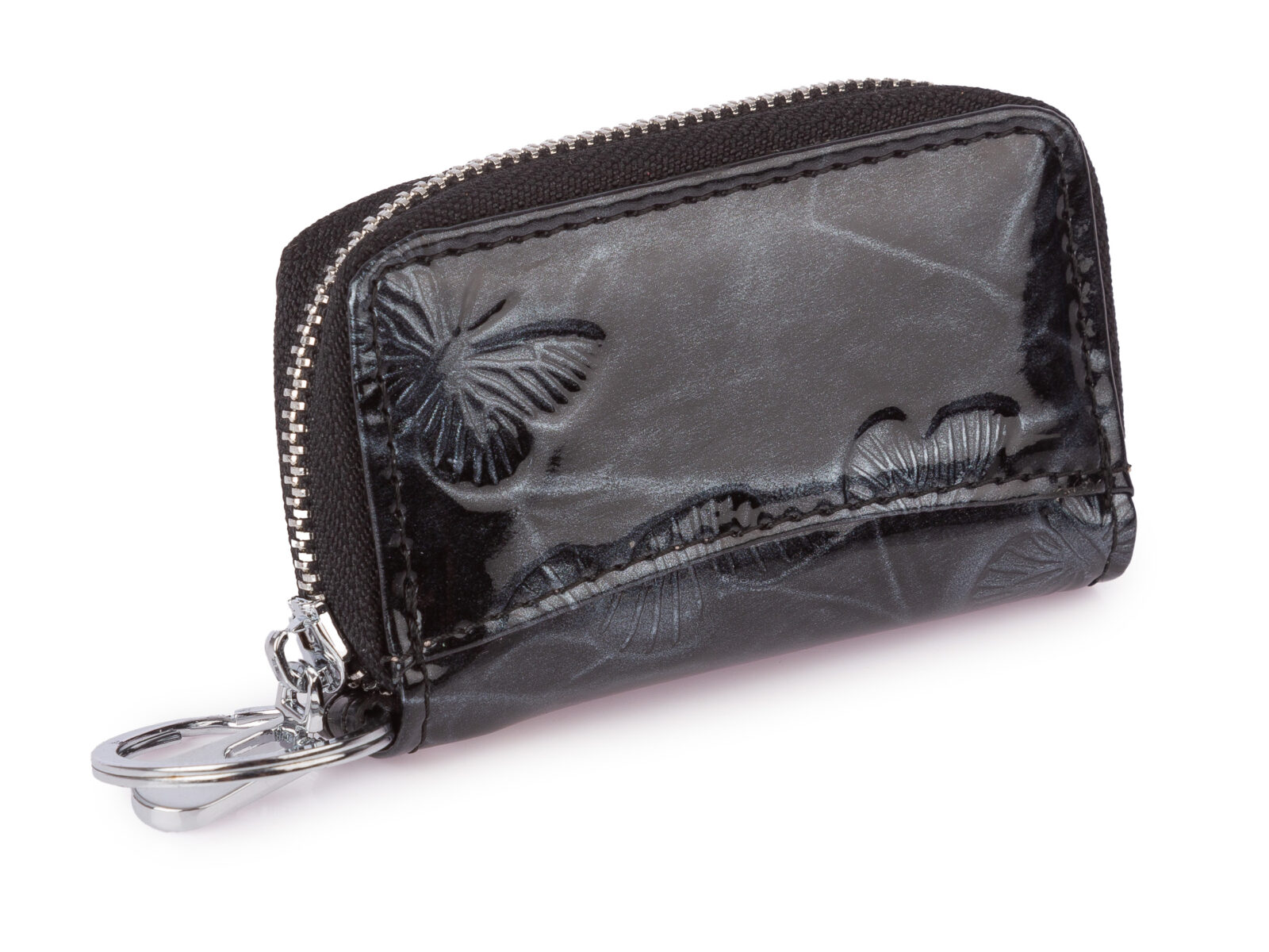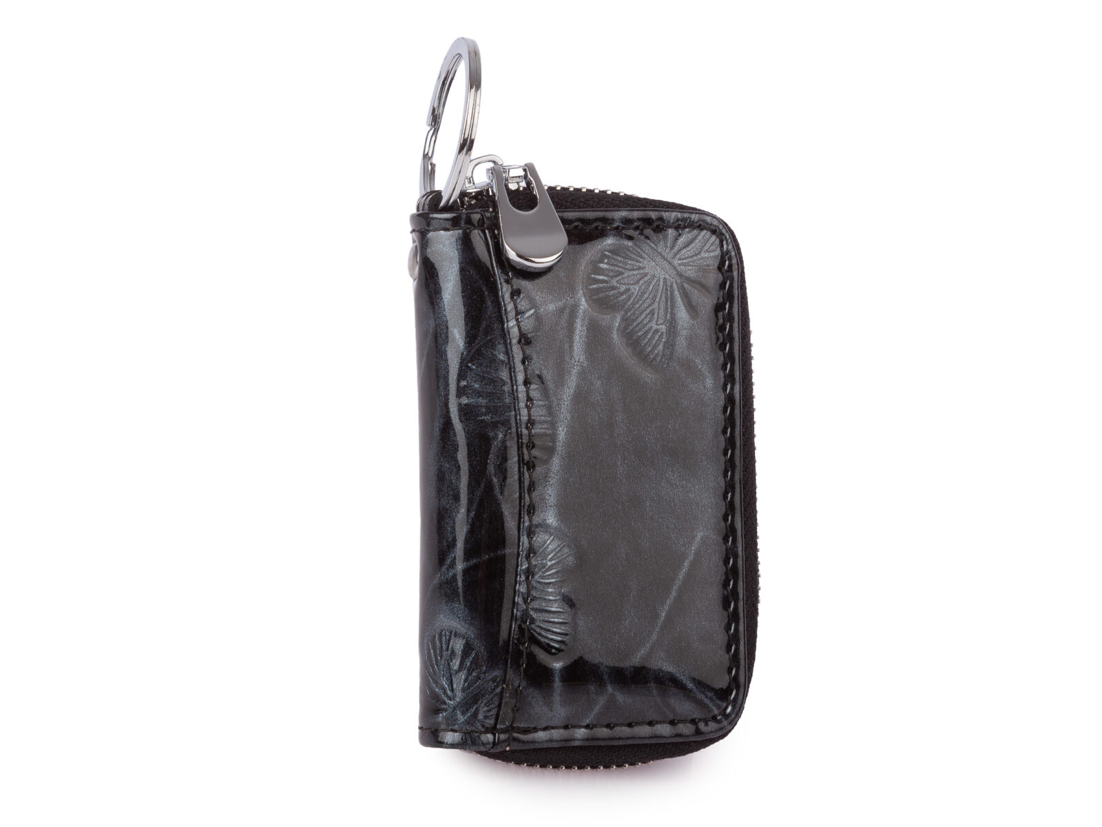 Etui na klucze damskie lakierowane na zamek szare kroko
