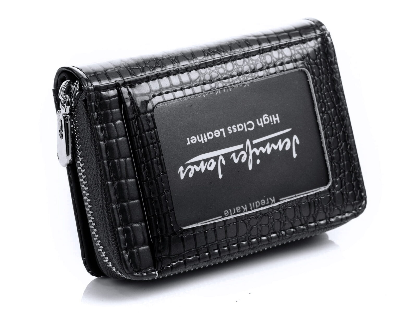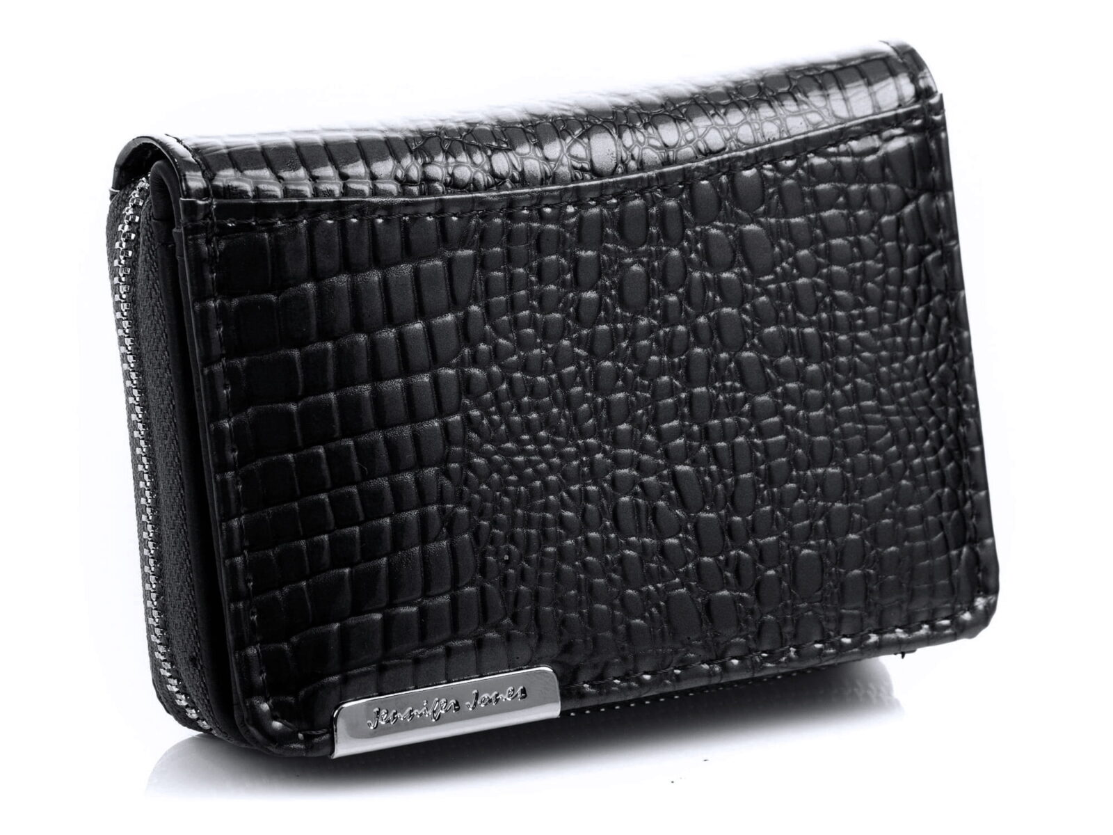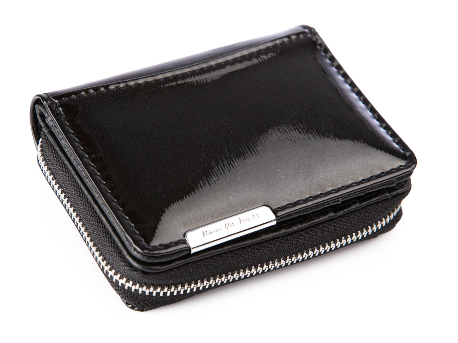 Mały portfel damski czarny lakierowany z suwakiem Jennifer Jones