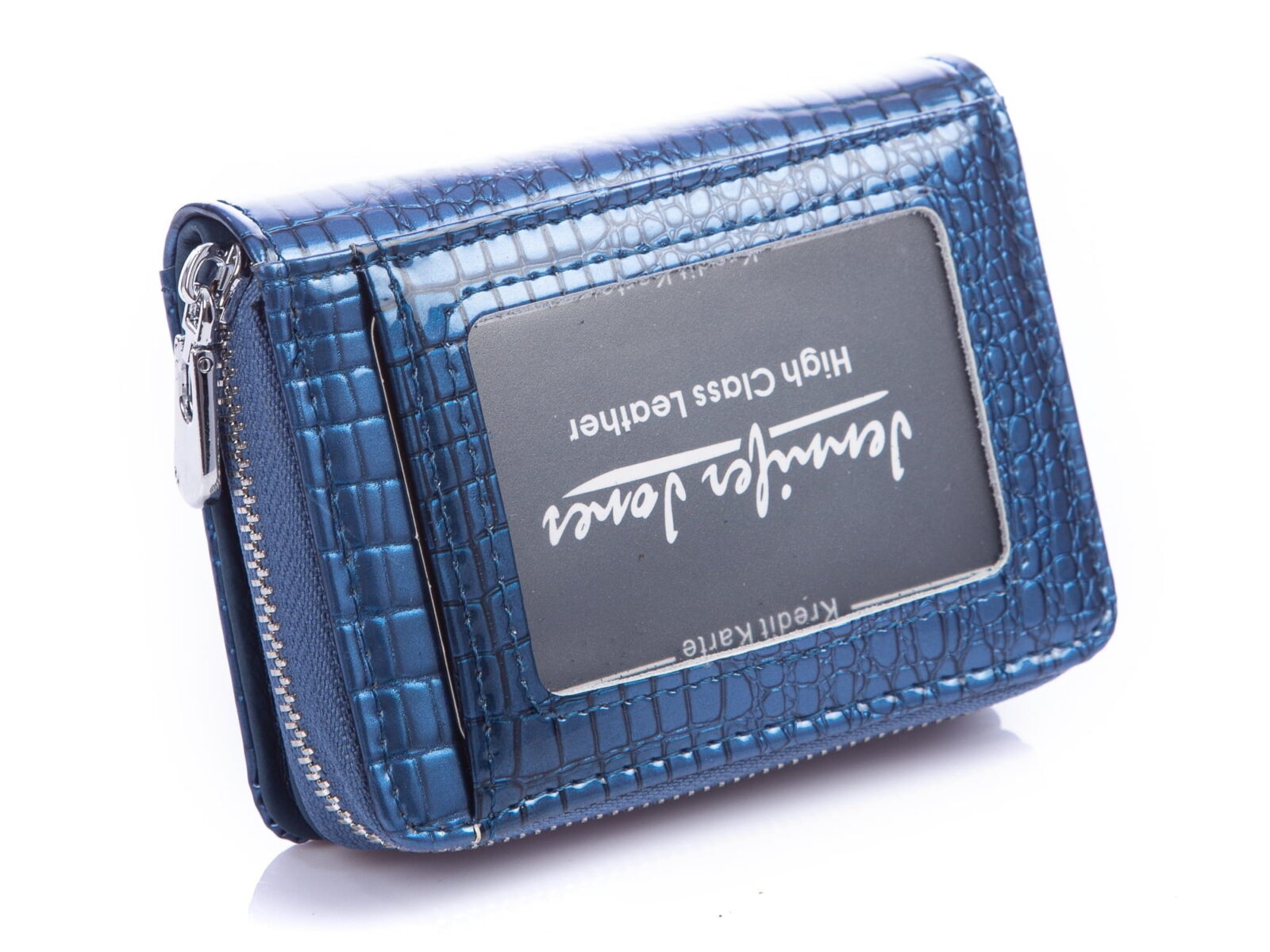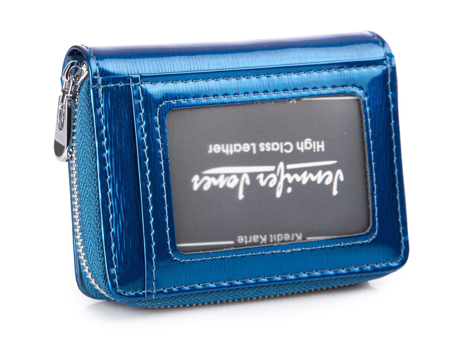 Mały portfel damski niebieski lakierowany z suwakiem Jennifer Jones