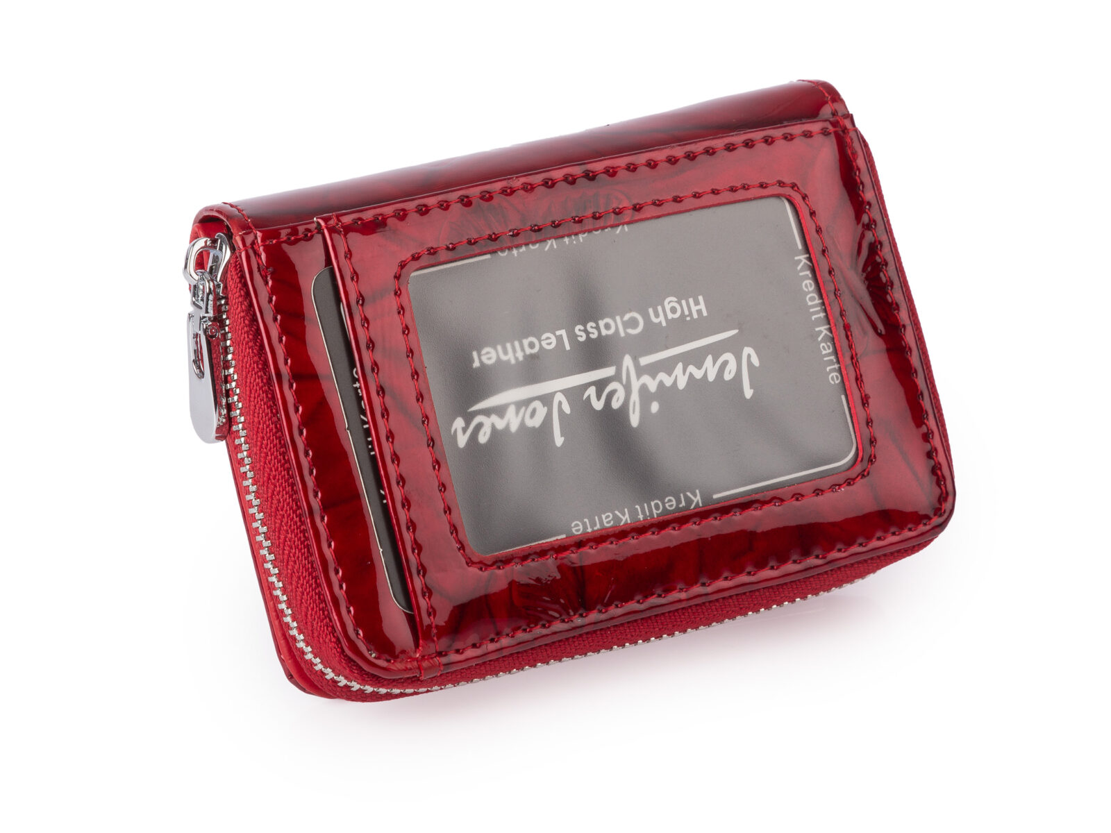 Skórzany mały czerwony portfelik damski lakierowany Jennifer Jones