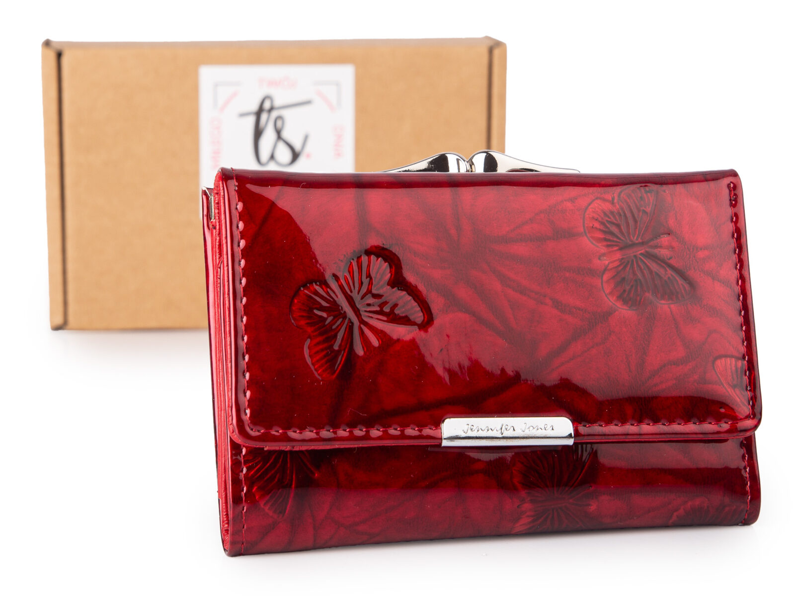 Lakierowany czerwony skórzany portfel damski na bigiel - Jennifer Jones