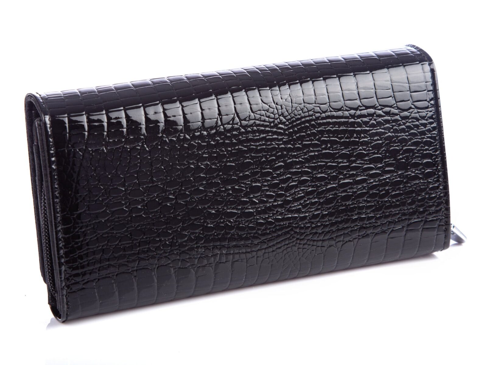 Duży portfel damski czarny lakierowany croco Jennifer Jones