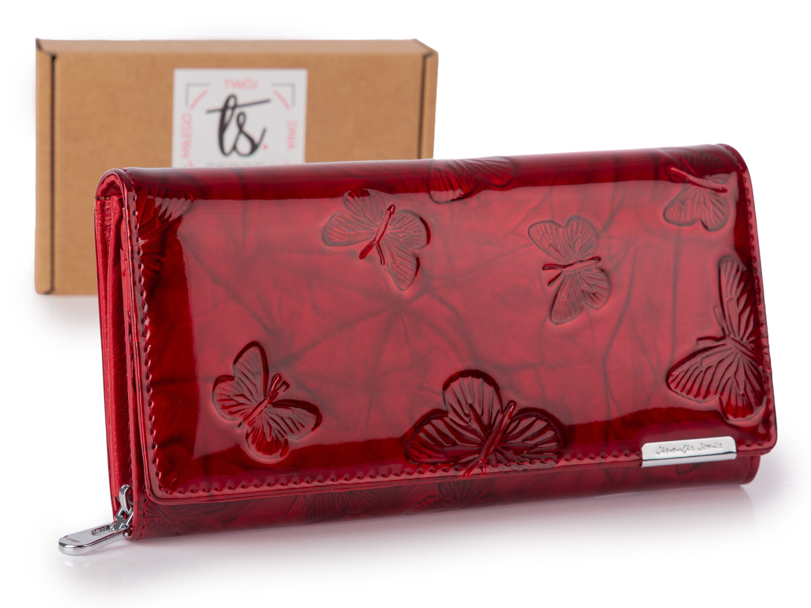 Burgundowy portfel damski lakierowany duży Jennifer Jones RFID