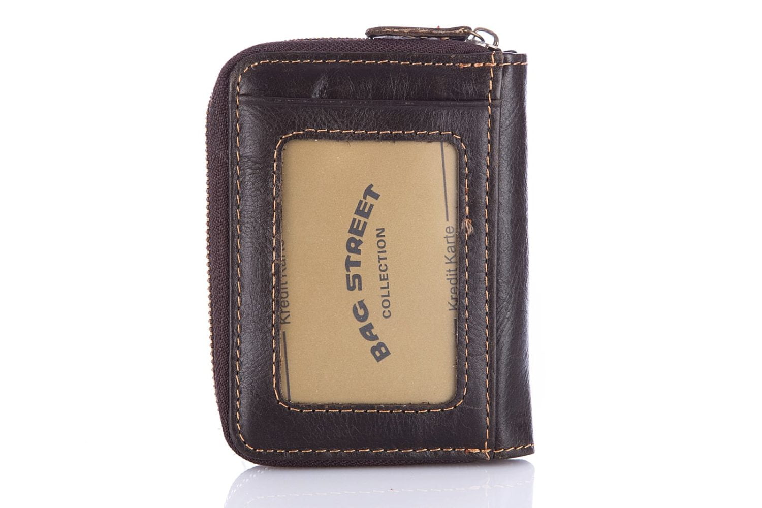 Mały, skórzany portfel męski ciemny brąz Wild's zapinany dookoła na zamek