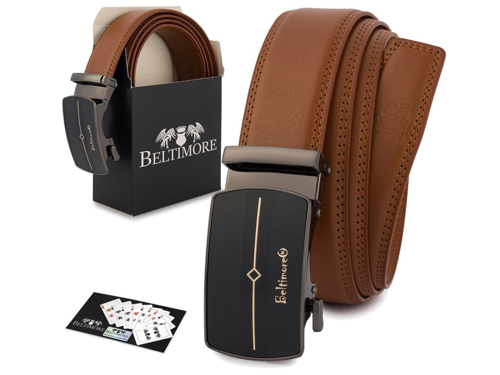 Elegancki, brązowy pasek męski skórzany z klamrą automatyczną Beltimore 110 cm