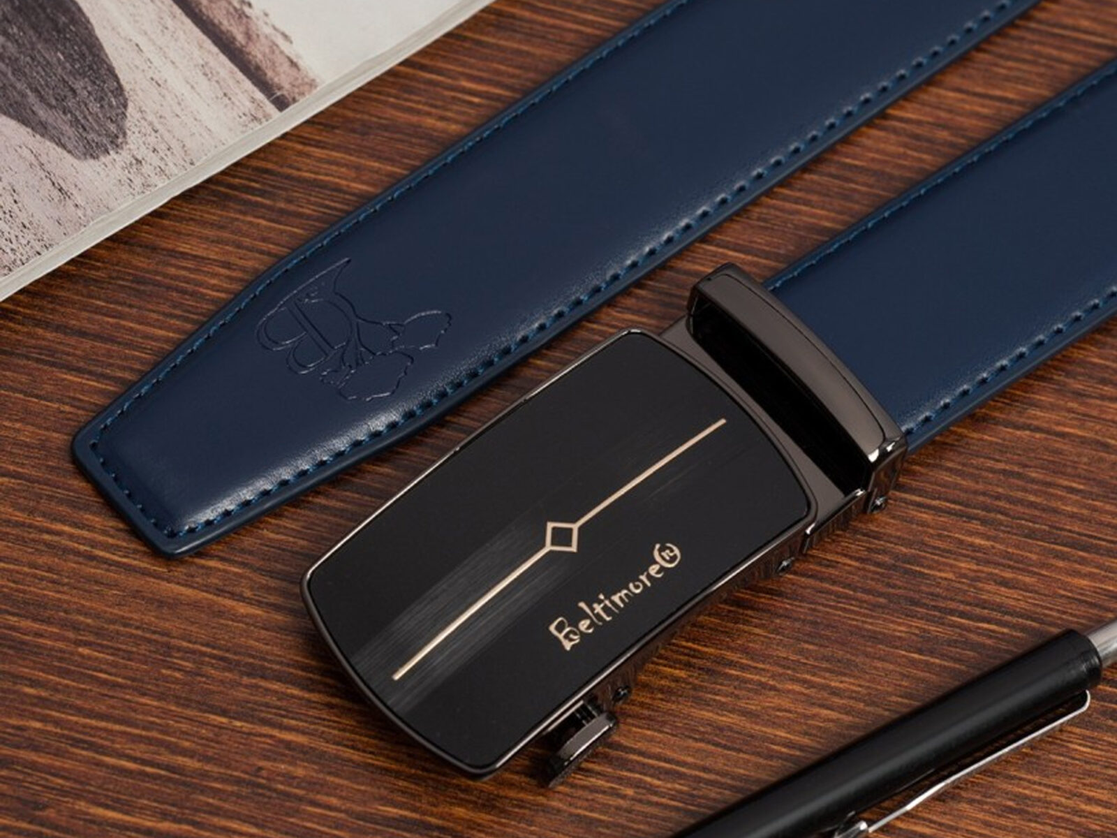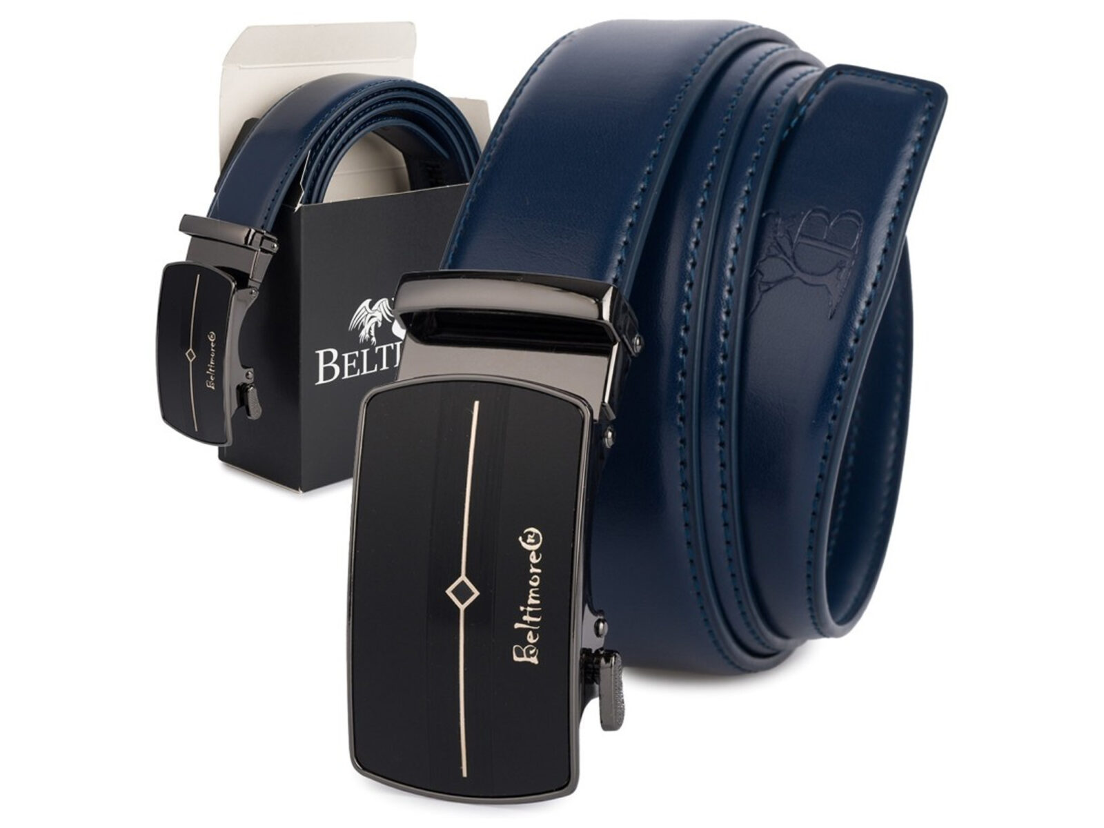 Elegancki, granatowy pasek męski skórzany z klamrą automatyczną Beltimore 110 cm