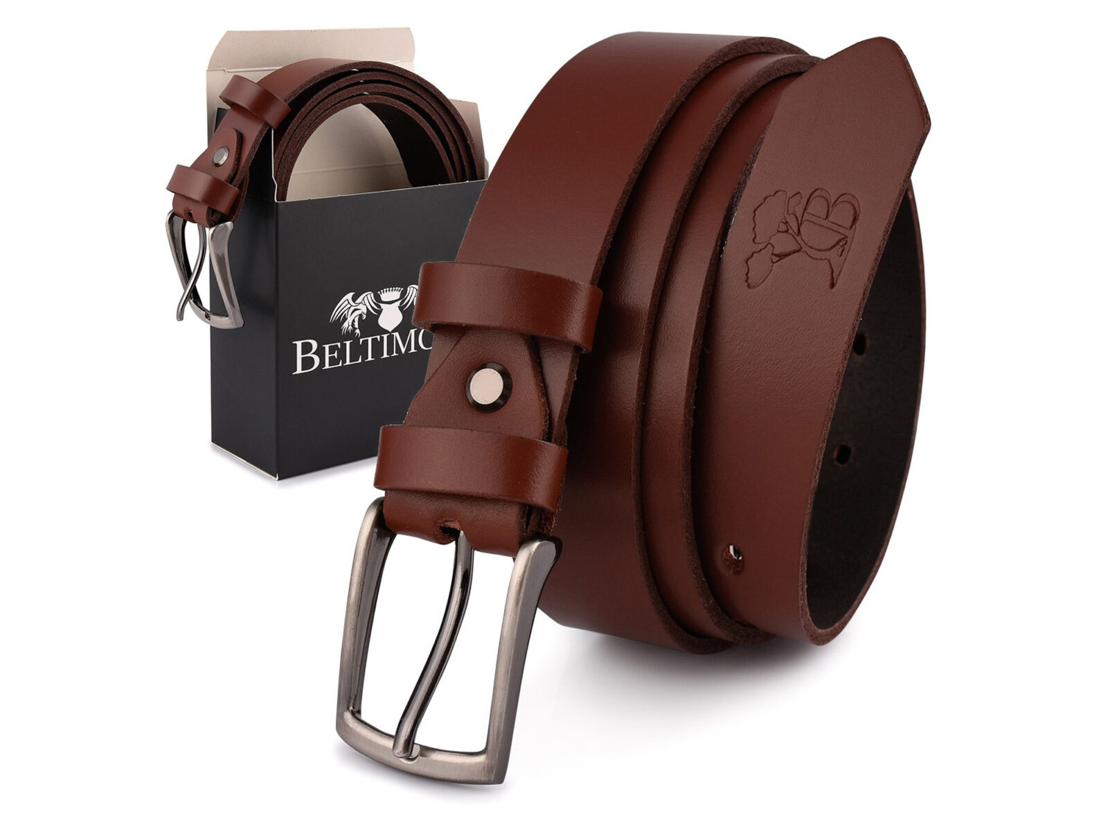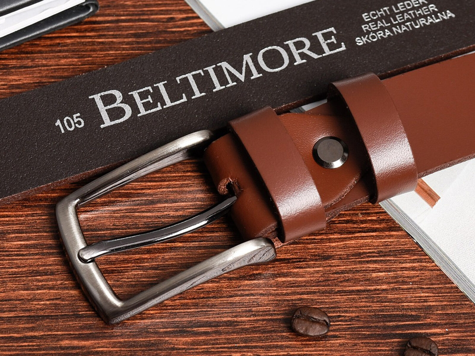 Wąski skórzany pasek męski do spodni 2.9 cm Beltimore brązowy 125 cm.