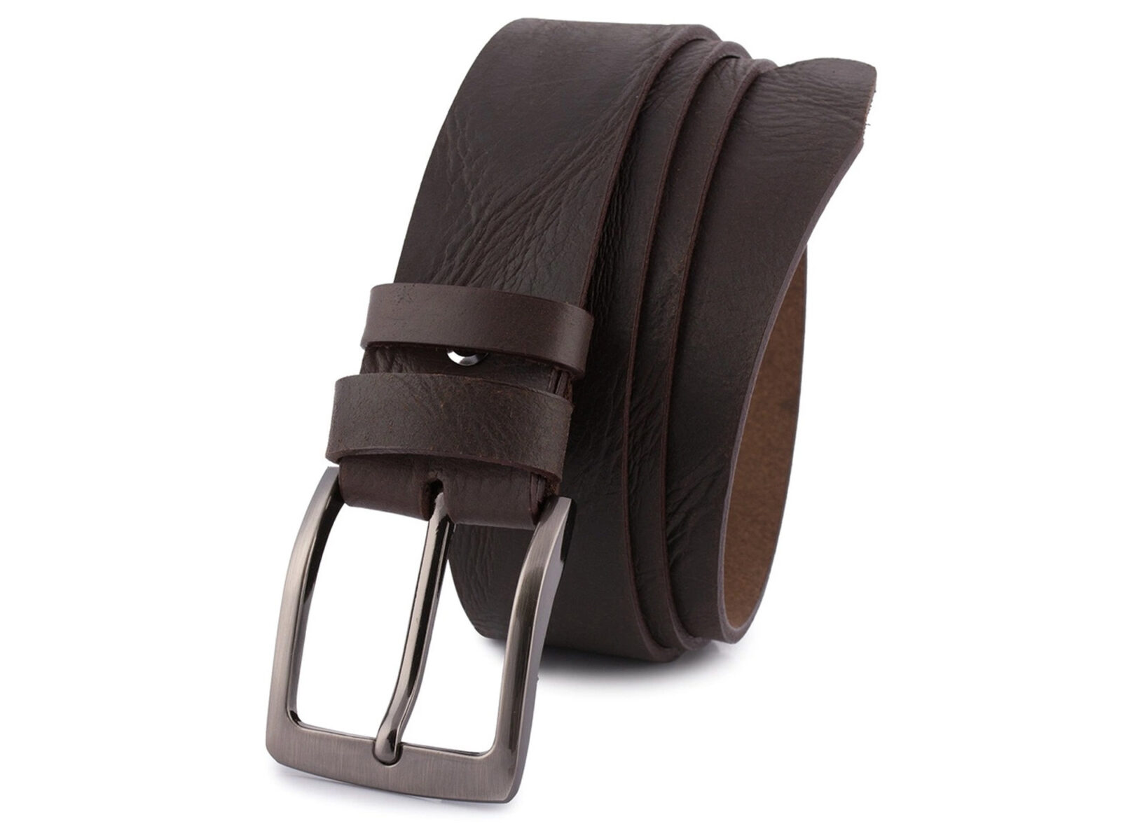 Klasyczny, skórzany pasek męski do spodni ciemnobrązowy skóra naturalna licowa