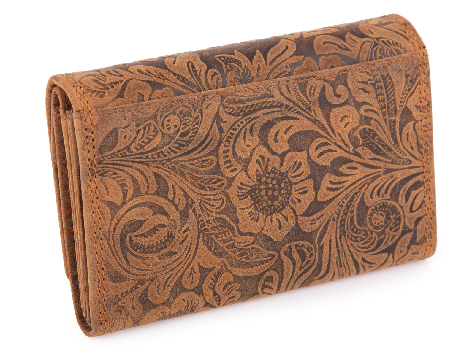 Portfel skórzany damski w stylu vintage z kwiatowym motywem - brązowy Blue Burry RFID
