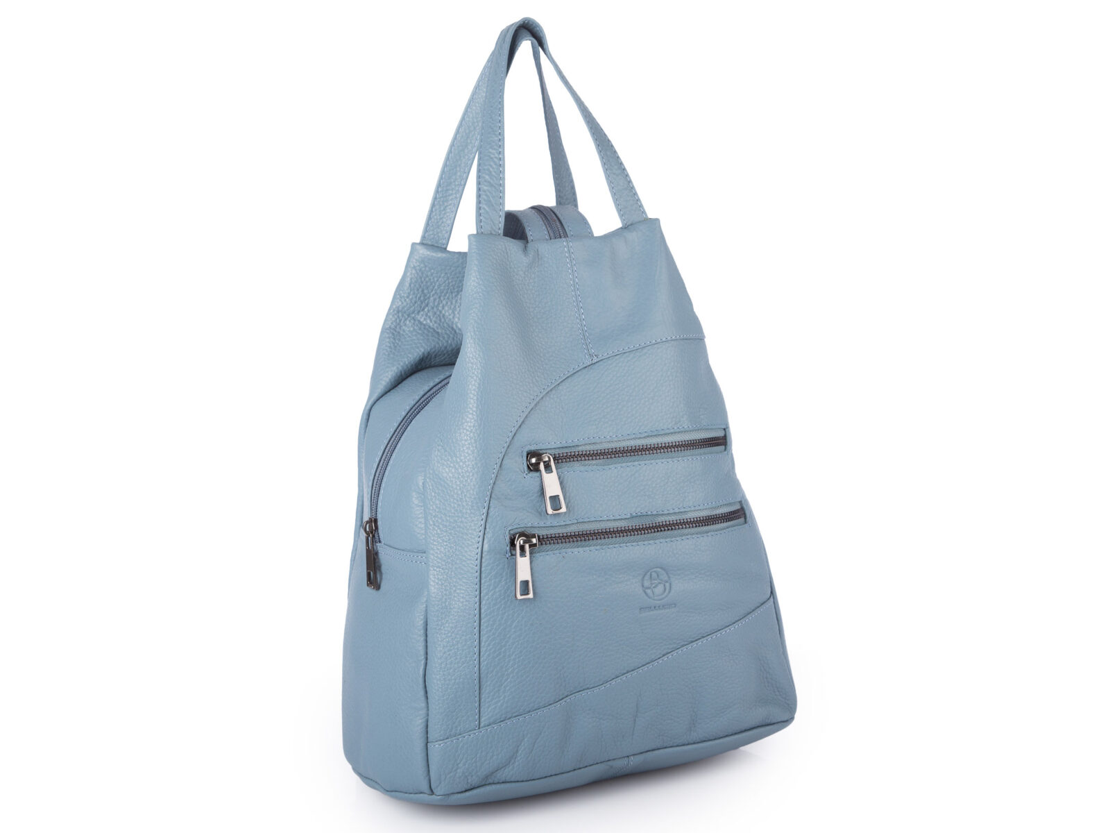 Miejski plecak damski z miękkiej skóry naturalnej na jedno lub dwa ramiona niebieski