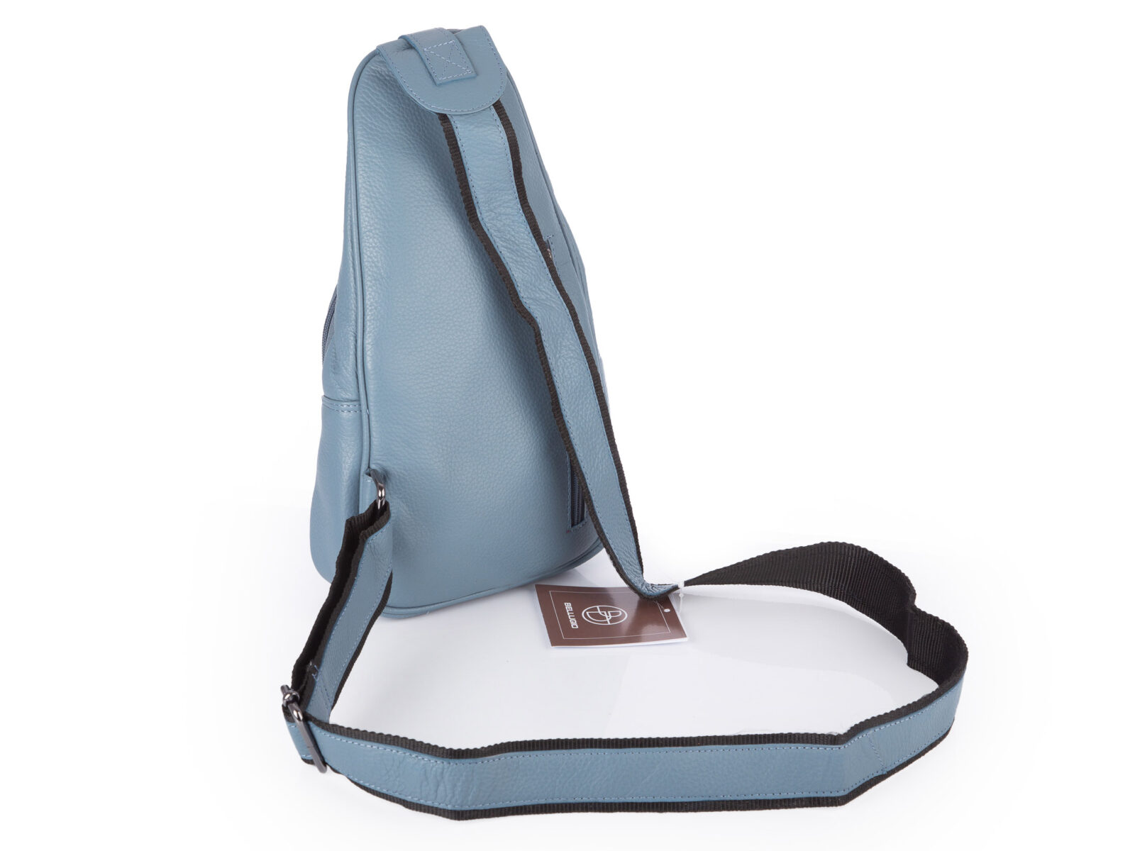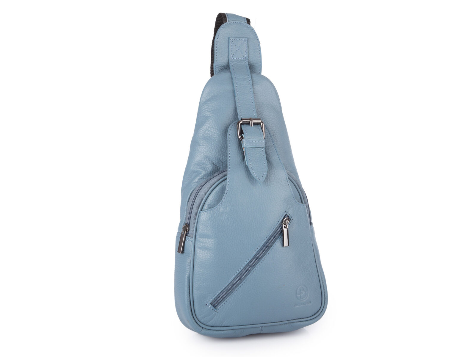 Skórzany plecak damski miejski na jedno ramię elegancki niebieski