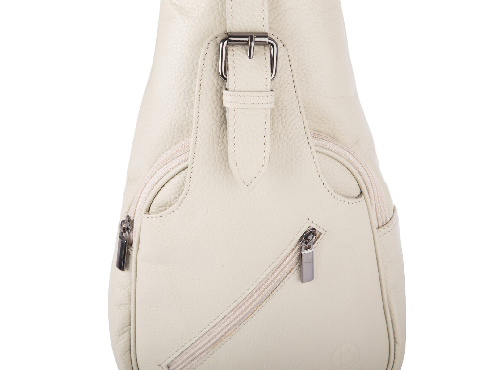 Skórzany plecak damski miejski na jedno ramię elegancki jasny beżowy