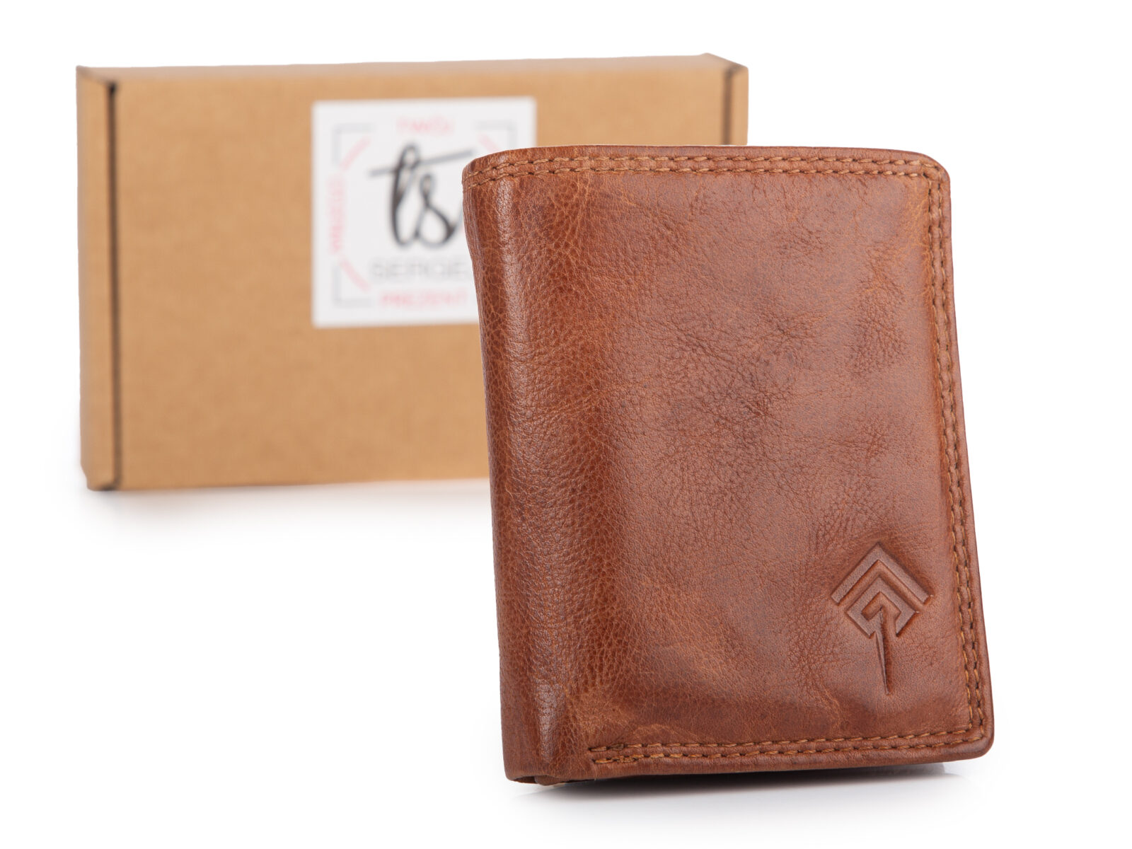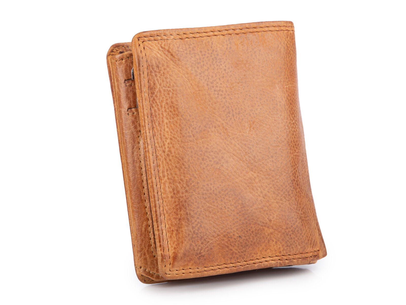 Nieduży, skórzany portfel szyty ręcznie w kolorze jasnobrązowym Ekavale RFID