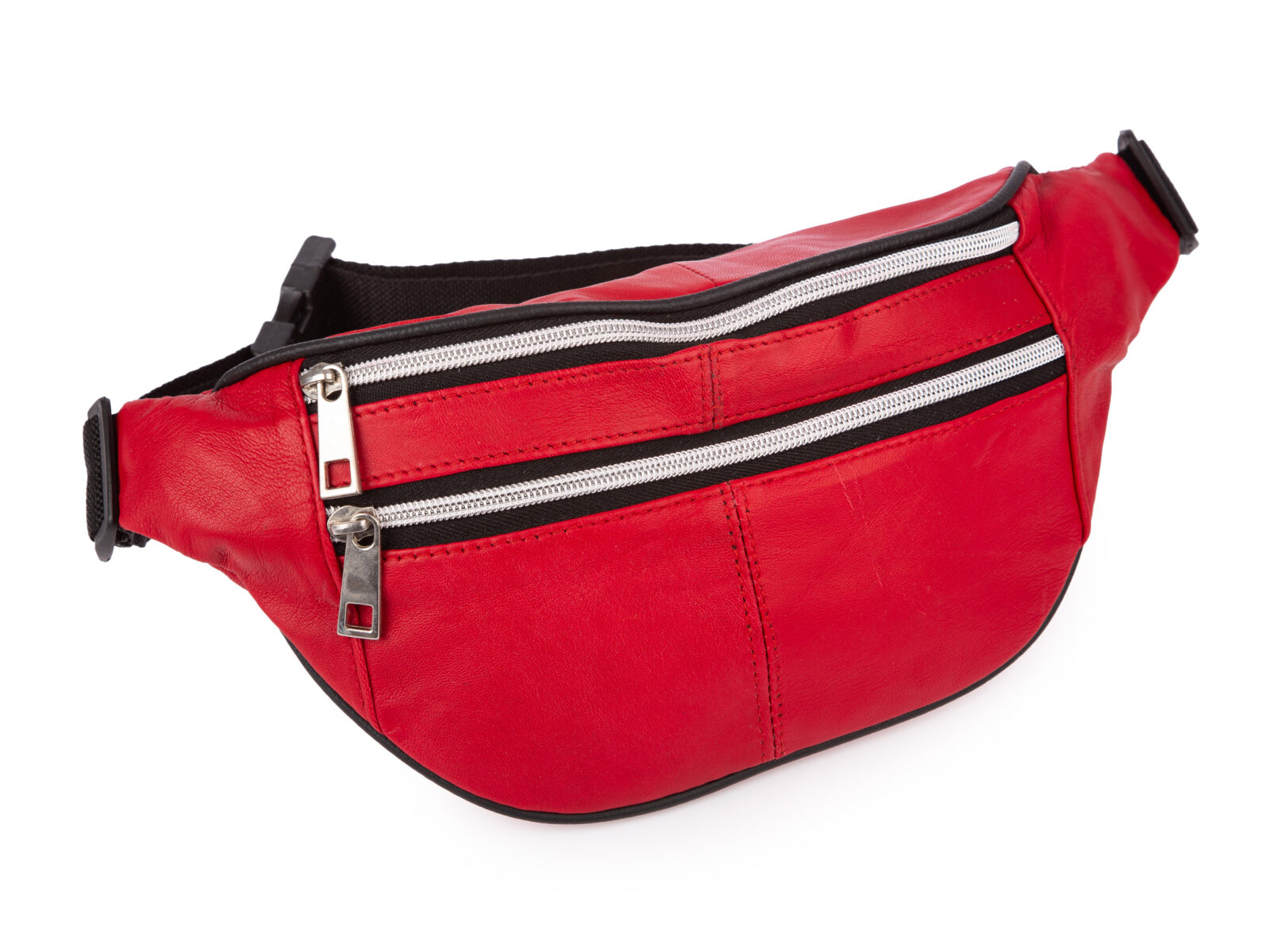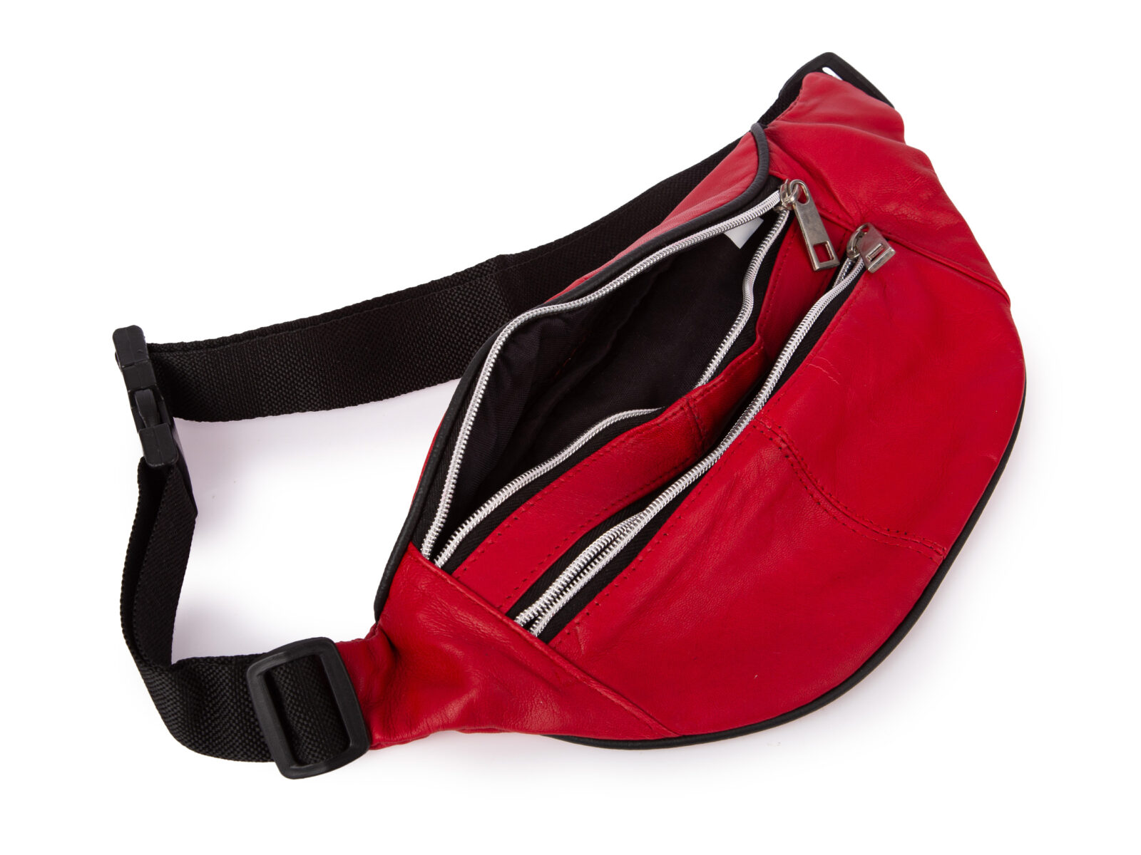 Skórzana saszetka biodrowa w kolorze czerwonym z miękkiej skóry naturalnej