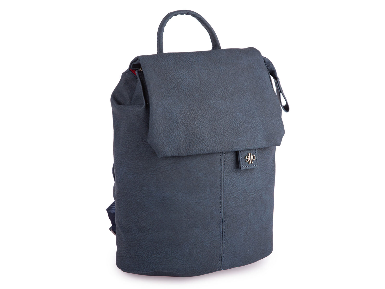 Granatowy mały plecak damski miejski z miękkiej skóry ekologicznej z klapką