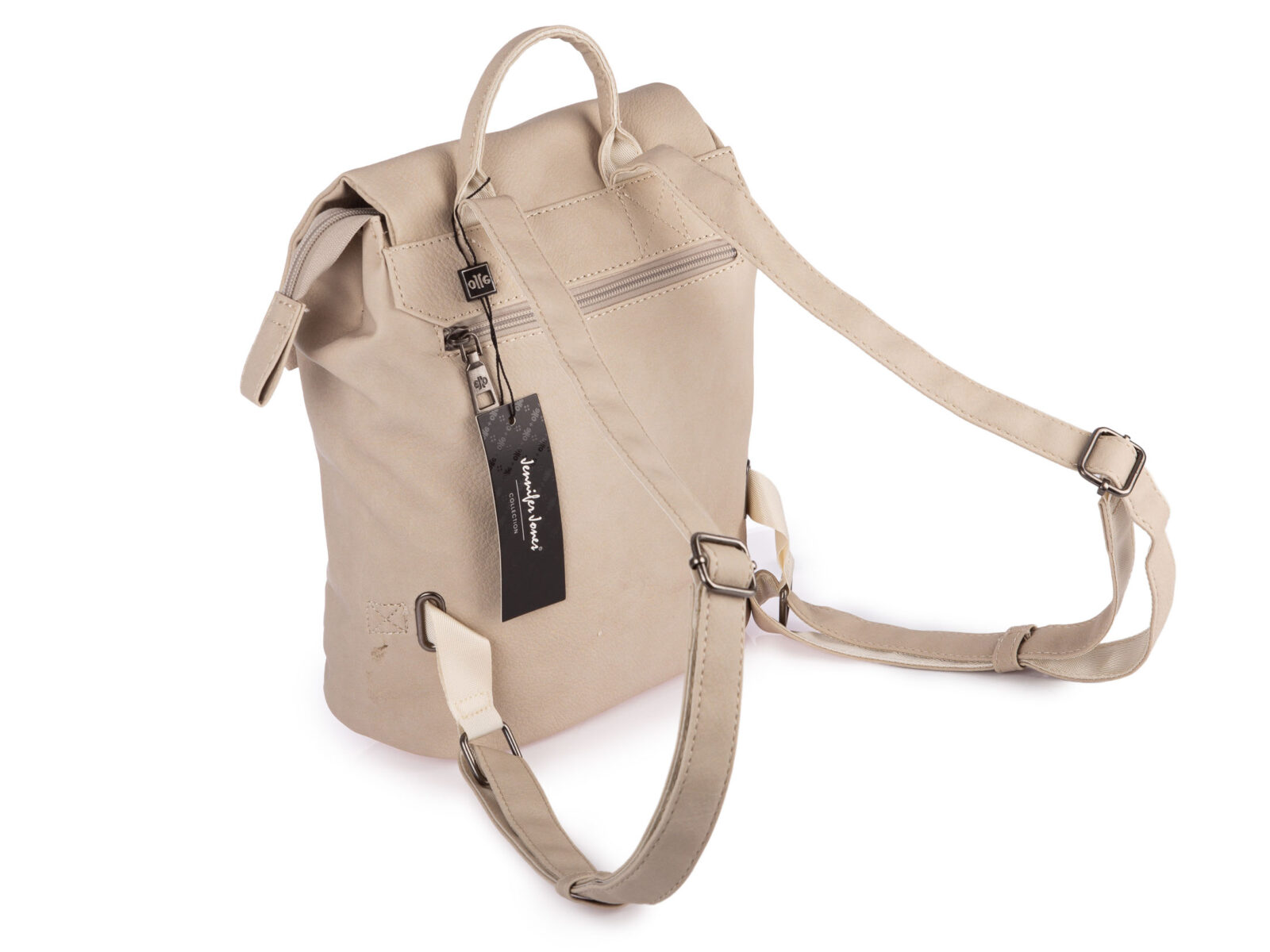 Beżowy mały plecak damski miejski z miękkiej skóry ekologicznej z klapką