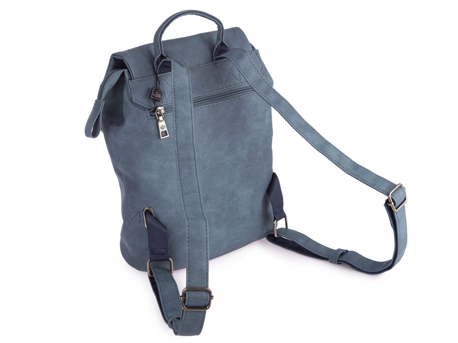 Niebieski mały plecak damski miejski z miękkiej skóry ekologicznej z klapką