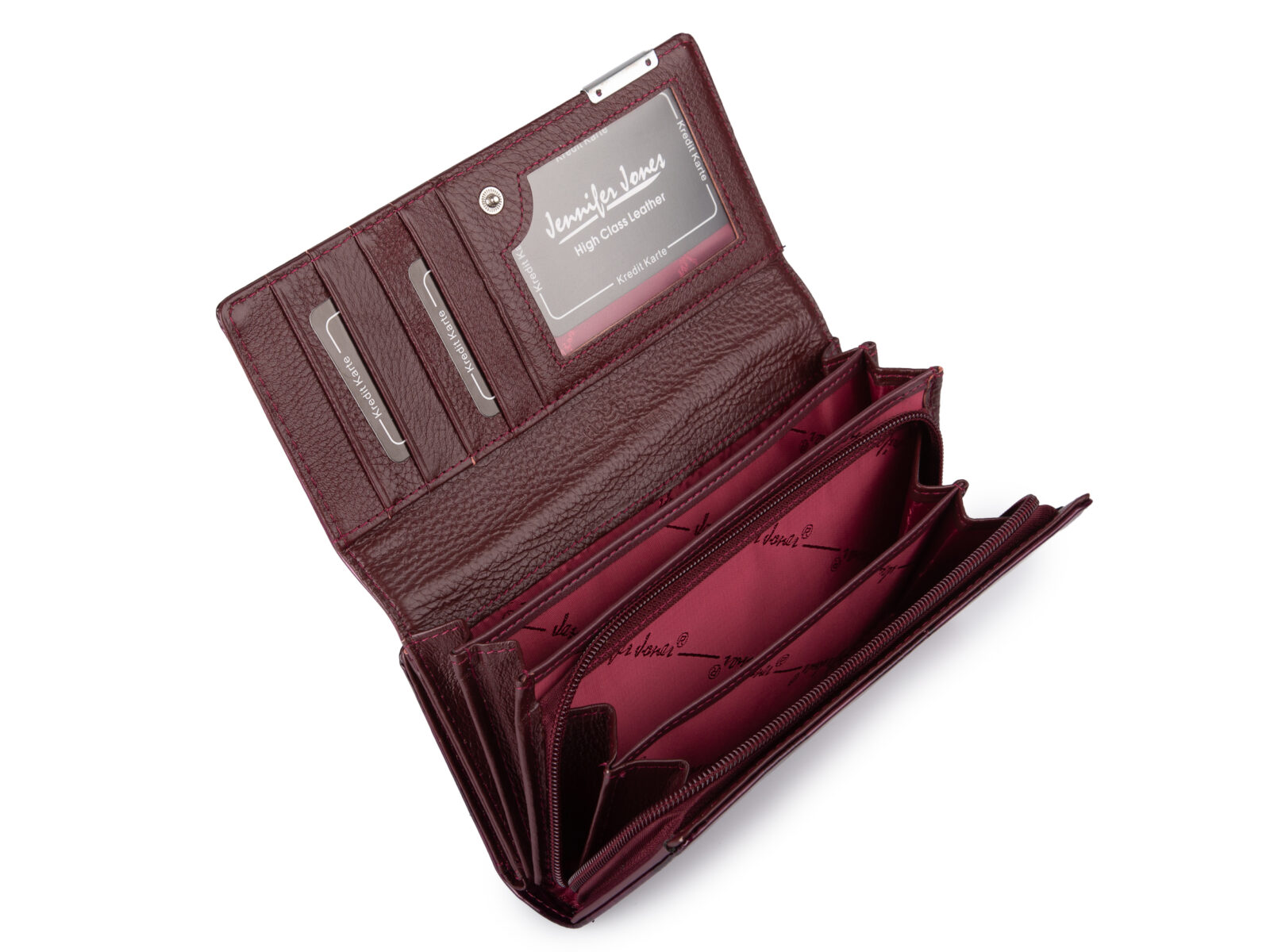 Elegancki duży portfel damski Jennifer Jones z lakierowanej skóry naturalnej RFID burgundowy