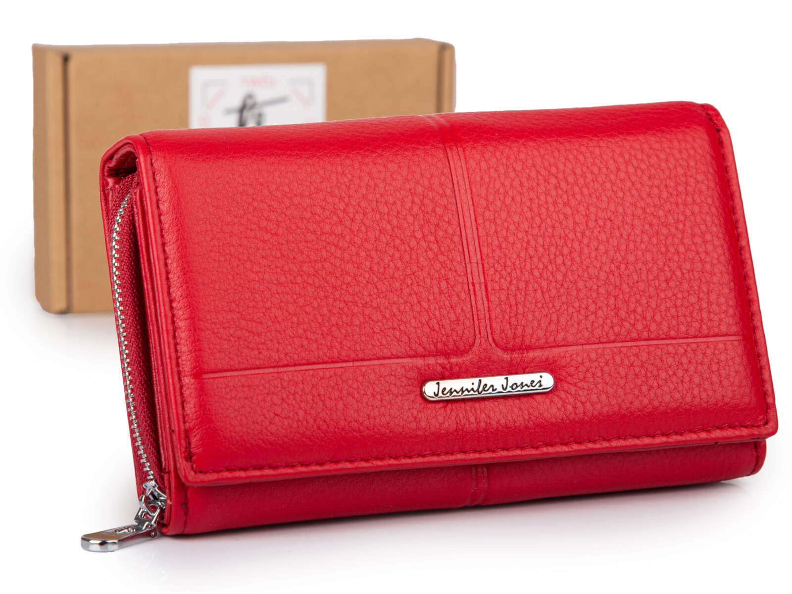 Duży matowy portfel damski skórzany czerwony Jennifer Jones