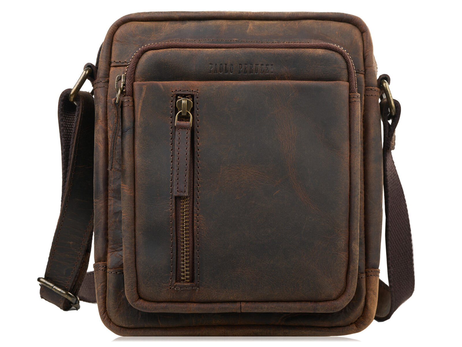 Ciemnobrązowa listonoszka męska na ramię ze skóry naturalnej Paolo Peruzzi