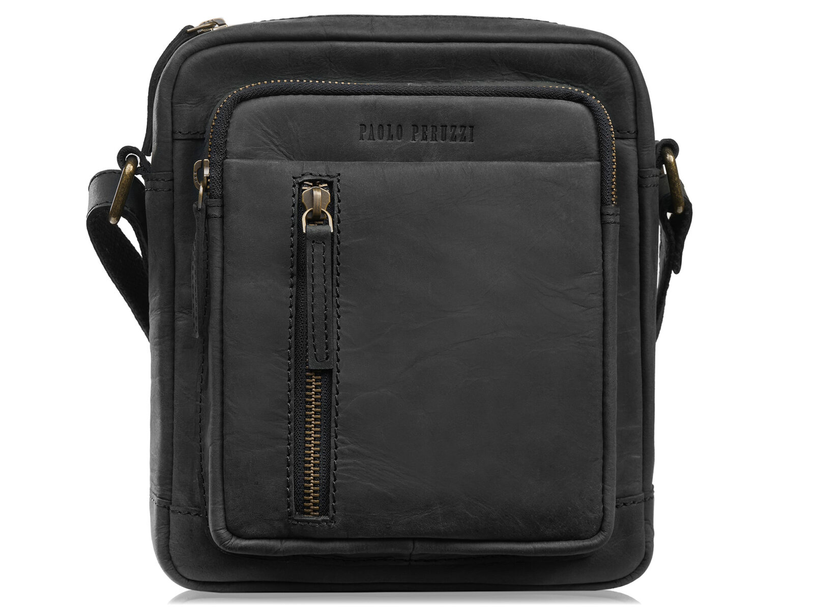 Czarna listonoszka męska na ramię ze skóry naturalnej Paolo Peruzzi