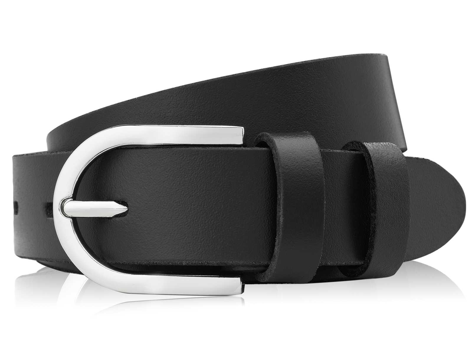 Pasek damski do spodni skórzany czarny ze srebrną klamrą 100 cm Paolo Peruzzi